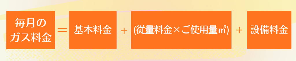 ガス料金は基本料金と従量料金と設備料金で構成されます。(消費税別途)