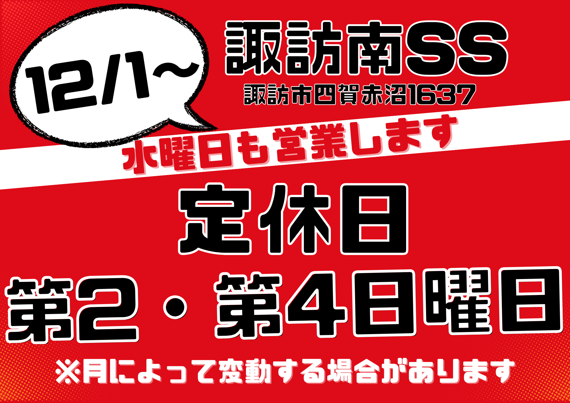 いつも諏訪南SSをご利用頂きましてありがとうございます。